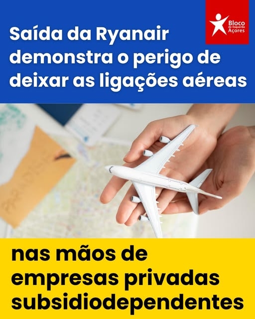 anúncio da saída da Ryanair dos Açores é a demonstração de que os Açores não podem ficar reféns de empresas privadas sem qualquer preocupação com a Região e com quem aqui vive.