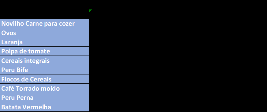 considerados, entre outros, produtos como Peru, Frango, Carapau, Pescada, Cebola,
