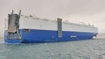 Portos dos Açores SA - Liberty Peace, ontem em operação no Porto da Praia da Vitória onde deixou duas unidades móveis para o destacamento americano da Base das Lajes.