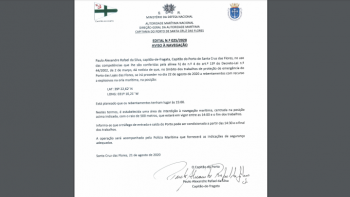 Edital n.º 25/2020 SCF - Aviso à Navegação - Lajes das Flores Edital n.º 25/2020 – Aviso à Navegação que versa sobre a execução de rebentamentos na orla marítima a sul do Porto das Lajes das Flores.