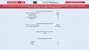 17/08, 13h12: 1 caso positivo e 2 recuperados na Ilha de São Miguel, após 868 análises à COVID-19 nos Açores