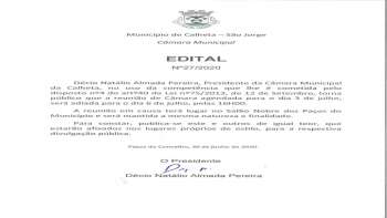 EDITAL 27/2020 Décio Natálio Almada Pereira, Presidente da Câmara Municipal da Calheta, torna público que a reunião de Câmara agendada para dia 3 de julho será adiada para o dia 6 de julho,