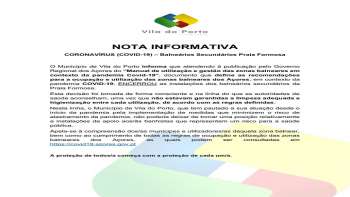Municipio de Vila do Porto - Nota Informativa Coronavírus (COVID-19) – Balneários Secundários Praia Formosa