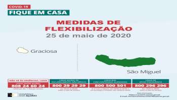 COVID-19: saiba quais as medidas de flexibilização de restrições nos Açores que entram em vigor a partir do dia 25 de maio para a ilha de São Miguel nos setores do desporto & lazer, administração regional, educação e cultura & espaços públicos.