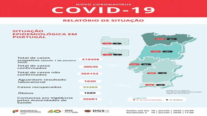 Já está disponível o relatório de situação de hoje, 19 de julho, que pode ser consultado integralmente em https://covid19.min-saude.pt/relatorio-de-situacao/