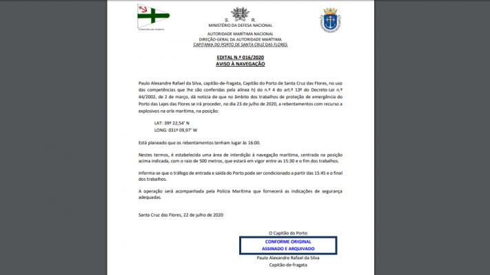 , edital, 016/2020, aviso, à, navegação, paulo, alexandre, rafael, da, silva, capitão-de-fragata, capitão, do, porto, de, santa, cruz, das, flores, sem, uso, das, competências, que, são, conferidas, pela, seção, h), do, 4, do, art, o, 13o, do, decreto-lei, no, 44/2002, de, 2, de, março, dá