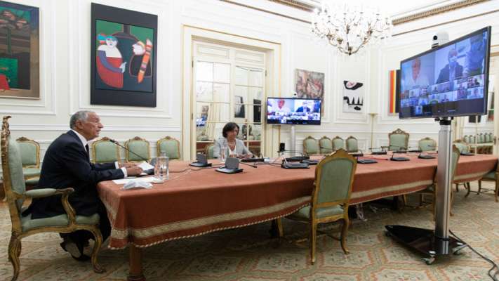 O Conselho de Estado, reunido sob a presidência de Sua Excelência o Presidente da República, hoje, dia 23 de julho de 2020, em sistema de videoconferência, no Palácio de Belém, analisou a situação social e económica decorrente do contexto pandémico ainda em curso, tendo debatido não só o enquadramento das respostas de Portugal para a recuperação conjuntural como as transformações estruturais, essencialmente perspetivadas para o médio e o longo prazos.