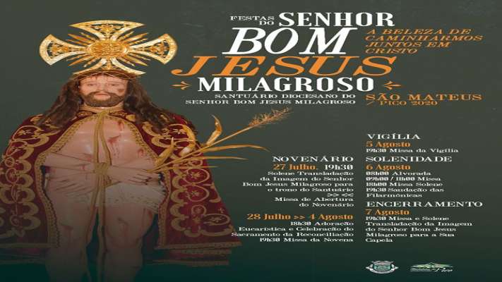 A Festa do Senhor Bom Jesus Milagroso será, este ano, celebrada com missa campal, no dia 6 de agosto, no adro do Santuário, atendendo às medidas de contenção da pandemia.