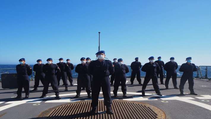 Durante o dia de hoje, a guarnição do navio pôs em prática táticas e procedimentos de defesa aérea, contando com a participação de duas aeronaves F16 da Força Aérea Portuguesa.