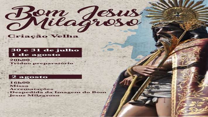 Câmara Municipal da Madalena Criação Velha Celebra Festa do Bom Jesus Milagroso Uma celebração da Criação Velha, no dia 2 de agosto, uma festa em honra do Senhor Bom Jesus Milagroso, com missa solene. A par da celebração eucarística, uma festividade a...