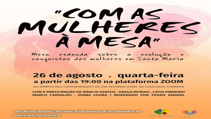 "Com as mulheres à mesa" é o tema da mesa redonda, em formato online, a decorrer no dia 26 de agosto (quarta-feira) a partir das 19h00, através da Plataforma ZOOM.