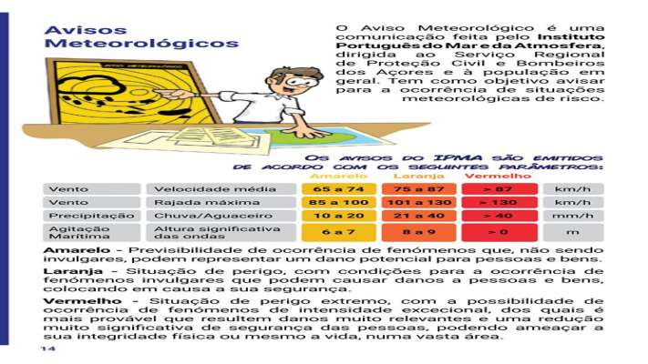 SRPCBA - Açores Fique a compreender melhor os avisos meteorológicos emitidos pelo Instituto Português do Mar e da Atmosfera (IPMA). Esta e outras informações disponíveis no livro ‘Proteção Civil em Casa’. Consulte em https://bit.ly/38XjmPo ... Ver , | Jornal “O Breves”–“ Breves TV Online”