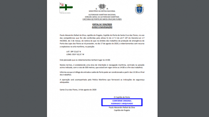 , edital, no, 024/2020, aviso, à, navegação, paulo, alexandre, rafael, da, silva, capitão-de-fragata, capitão, do, porto, de, santa, cruz, das, flores, no, uso, das, competências, que, lhe, são, conferidas, pela, alínea, h), do, n, º, 4, do, art, o, 13º, do, decreto-lei, n, º, 44/2002, de, 2, d