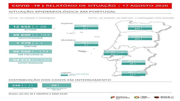 Já se encontra disponível o relatório de situação de hoje, 17 de agosto, que pode ser consultado integralmente em https://www.dgs.pt/