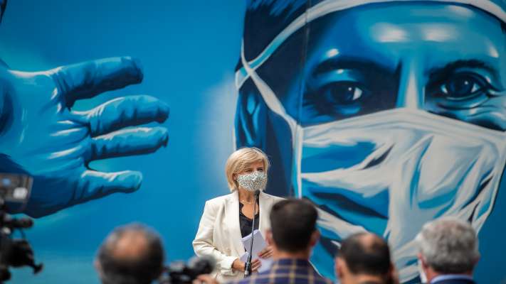 Ministra da Saúde, Marta Temido, durante a visita ao Centro Hospitalar de Vila Nova de Gaia/Espinho, 20 agosto 2020 (Foto: Rui Manuel Farinha/Lusa).................................https://www.portugal.gov.pt/pt/gc22