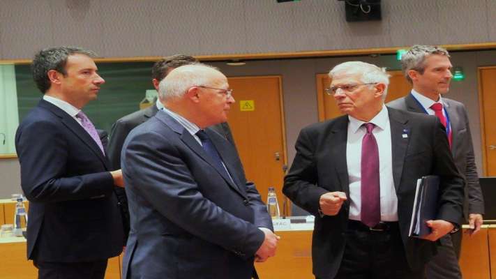 Ministro de Estado e dos Negócios Estrangeiros, Augusto Santos Silva, com o Alto Representante da UE para Política Externa e de Segurança, Josep Borrell, no Conselho de Ministros dos Negócios Estrangeiros, Bruxelas, 10 de janeiro de 2020 (Foto: UE)
