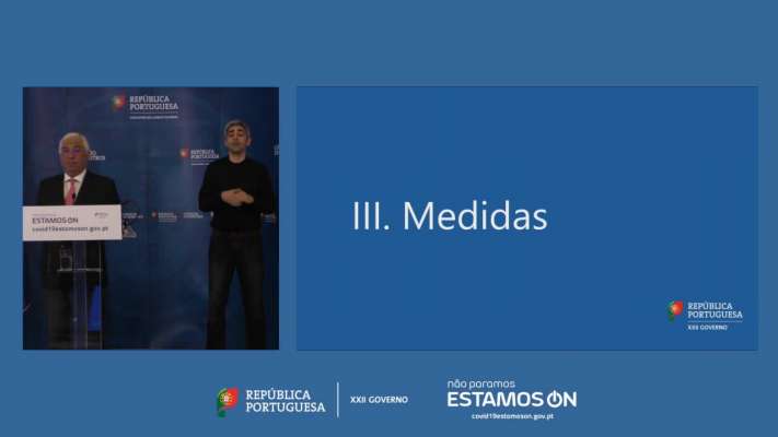 António Costa disse ainda que este «é um percurso que temos de fazer em confiança, mas em conjunto, contado com a responsabilidade e o emprenho de cada português e podendo os portugueses contar com a total determinação do Governo em adotar todas as medidas que forem necessárias para preservar a saúde pública».