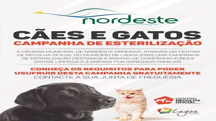 A Câmara Municipal do Nordeste está a promover uma campanha de esterilização (castração) de cães e gatos, gratuita e para residentes do concelho. Os interessados deverão contactar a junta de freguesia da sua localidade para o efeito, a qual encaminhará posteriormente a informação para a câmara municipal. A esterilização é limitada a 3 animais por família.