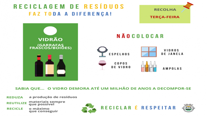 O vidro pode ser infinitamente reciclado, mas há que ter cuidado na hora de o colocarmos no vidrão porque nem todos os objetos de vidro podem ir para o ecoponto verde.