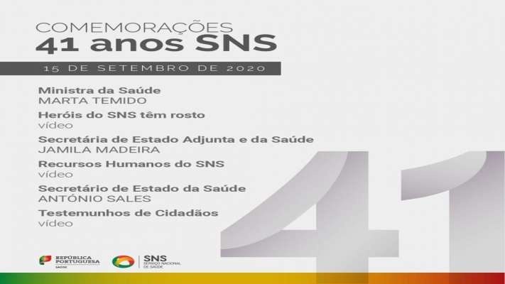 , parabéns, ao, sns, celebrações, dos, 41, anos, em, direto, a, partir, das, 15h30, este, ano, o, 41, º, aniversário, do, serviço, nacional, de, saúde, (sns), é, comemorado, online, hoje, dia, 15, de, setembro, será, transmitido, em, direto, no, portal, do, sns, a, partir, das, 15h30, o