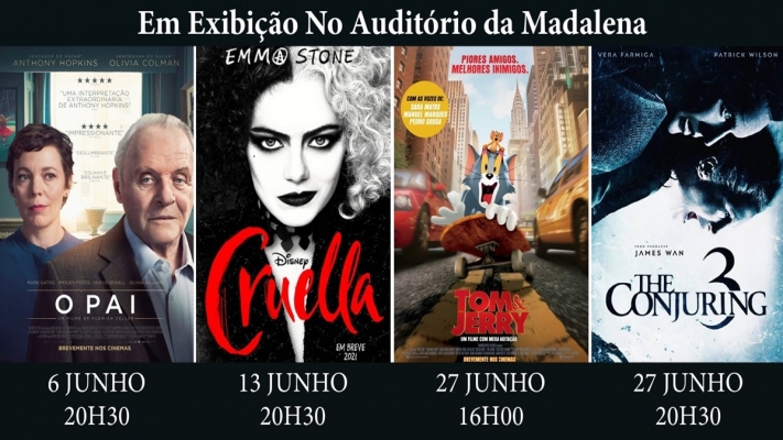 O Auditório da Madalena reabre, em junho, as suas portas às grandes estreias da indústria cinematográfica, com as habituais sessões de cinema, aos domingos, pelas 20h30, mantendo-se, igualmente, o horário dedicado aos mais jovens, pelas 16h00.
