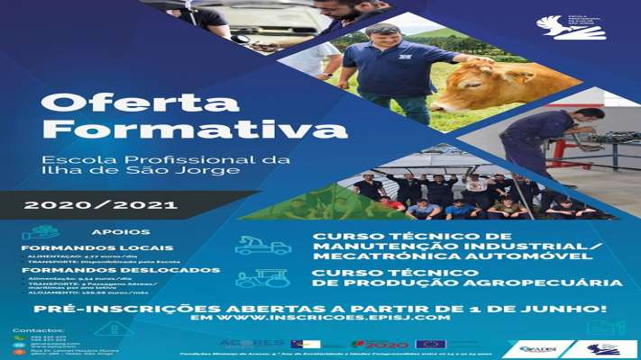 A Oferta Formativa da Escola Profissional de São Jorge, para o ano letivo 2020/2021, inclui o Curso Técnico de Manutenção Industrial/Mecatrónica Automóvel e o Curso Técnico de Produção Agropecuária.