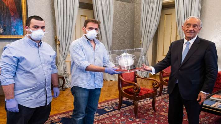O Presidente da República recebeu, no Palácio de Belém, Ricardo Cascalheira e Nuno Rosado, promotores do SOSCOVID, que lhe entregaram a viseira n.º 250 mil produzida gratuitamente por este movimento, que iniciou a sua produção apenas com recurso à impressão 3D.