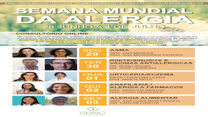Em plena Semana Mundial da Alergia, que se assinala de 28 de junho a 4 de julho, a SPAIC – Sociedade Portuguesa de Alergologia e Imunologia Clínica – vai abrir as suas redes sociais a sessões diárias de perguntas e respostas. Cada dia estará em destaque uma doença alérgica e dois especialistas disponíveis, em direto, para responder às dúvidas e preocupações dos doentes.