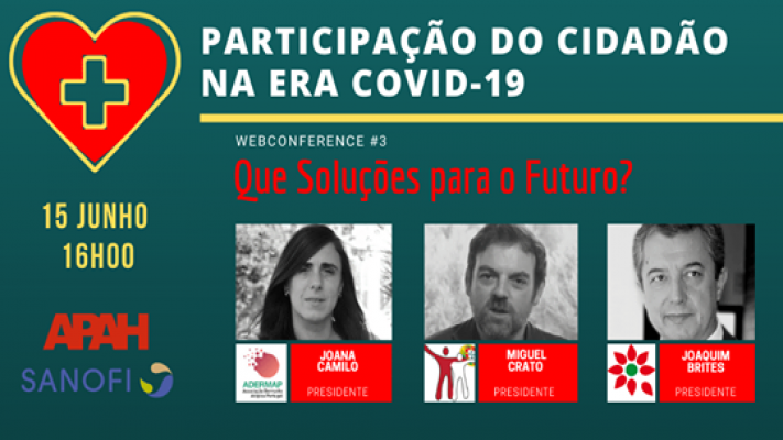 Com a participação de Joana Camilo, Presidente da ADERMAP, Miguel Crato, Presidente da Associação Portuguesa de Hemofilia (APH) e Joaquim Brites, Presidente da Associação Portuguesa de Neuromusculares (APN), a sessão aborda de que forma o Serviço Nacional de Saúde (SNS) pode melhorar na resposta aos seus utentes no Pós-COVID-19.